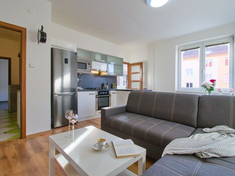 Nabízím k dlouhodobému pronájmu světlý a vzdušný byt 2+kk po kompletní rekonstrukci, umístěný ve 3. nadzemním podlaží stylově zrekonstruovaného činžovního domu z roku 2024. Budova spojuje původní historický charakter s moderní architekturou a nabízí reprezentativní společné prostory i vysoký standard bydlení. Byt je částečně vybavený novým moderním nábytkem a spotřebiči: Pokoj: plovoucí podlaha, vestavná šatní skříň se zrcadlem a dotykovým ovládáním. Předsíň: keramická dlažba, designová předsíňová stěna s botníkem s dotykovým otevíráním, domácí telefon. Kuchyňský kout: nadčasová kuchyňská linka na míru v elegantním designu s dostatkem úložného prostoru a kvalitním kováním. Součástí jsou vestavné spotřebiče – lednice s mrazákem, myčka, mikrovlnná trouba, indukční varná deska a tichá digestoř. Pracovní deska i obklady jsou v moderním, snadno udržovatelném provedení. Celý prostor působí velmi čistě a harmonicky, s důrazem na detail a funkčnost. Podlaha je plovoucí, samozřejmostí jsou zásuvky pro TV a internet. Koupelna: elegantní a moderní prostor s kvalitními materiály a promyšleným designem, který harmonicky navazuje na kuchyňský kout. Součástí je prostorný sprchový kout se skleněnou zástěnou, závěsné WC Geberit, umyvadlo se skříňkou s úložným prostorem, dotykové zrcadlo s podsvícením, pračka a topný žebřík. Keramická dlažba a obklady v neutrálních tónech podtrhují čistý a stylový vzhled celé koupelny, která působí svěže a komfortně. Byt působí velmi příjemně, je světlý, tichý a nadstandardně vybavený, ideální pro jednotlivce nebo pár, kteří hledají moderní a komfortní bydlení v atraktivní části Prahy. Lokalita: Dům se nachází v oblíbené části Prahy 10 – Strašnice, s vynikající dopravní dostupností a kompletní občanskou vybaveností. Tramvajová zastávka je přímo u domu, stanice metra A – Strašnická je v docházkové vzdálenosti. V okolí najdete obchody, kavárny, restaurace, lékárny, fitness centrum i zeleň pro volnočasové aktivity. Jedná se o bezpečnou a klidnou lokalitu, která umožňuje pohodlné bydlení s rychlým spojením do centra města. Nájemné: 23 000,- Kč/ měsíc, poplatky za služby cca 3000,- Kč/měsíc (upraveno bude podle počtu osob). Elektroměr bude převeden na nájemce. Vratná jistota (kauce): 30 000,- Kč Provize realitní kanceláři: 23 000,- Kč Veškeré podklady a informace jsou k nahlédnutí u makléřky.