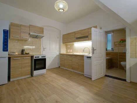 Nabízím k pronájmu světlý a prostorný byt 2+1 po kompletní rekonstrukci, situovaný ve 2. nadzemním podlaží udržovaného cihlového domu se zahradou, který stojí v klidné a zelené části obce. K bytové jednotce lze také využívat půdní prostory. Dům má tradiční architekturu s původními prvky a působí velmi reprezentativně. Byt samotný zaujme příjemnou atmosférou, dostatkem denního světla a klidným prostředím. Součástí vybavení je nová kuchyňská linka s novými spotřebiči – myčka nádobí, mikrovlnná trouba, digestoř, lednice a pračka. K dispozici je také technická místnost umístěná před bytem, kde se nachází bojler (Dražice), kotel (Protherm) a vodoměr. V obývacím pokoji byla ponechána původní krbová kamna, sloužící jako designový prvek. V koupelně se nachází vana, umyvadlo se skříňkou, zrcadlo s osvětlením a toaleta je vybavena závěsným WC systémem s podomítkovou nádržkou Geberit, který zajišťuje snadnou údržbu a čistý vzhled prostoru. Moderní obklady v přírodních tónech doplňují celkový svěží styl interiéru. Byt je připraven k okamžitému nastěhování – stačí si vzít klíče a začít bydlet. V případě zájmu lze zahradu využívat soukromě, včetně kůlny a skleníku. Zahrada nabízí dostatek prostoru nejen k odpočinku, ale i pro vlastní pěstitelské aktivity – bylinky, zeleninu či okrasné rostliny. K dispozici je venkovní posezení, bezproblémové parkování před domem a do budoucna možnost pronájmu samostatné garáže. Byt představuje harmonické spojení pohodlí, soukromí a klidného prostředí se zelení, ideální pro jednotlivce nebo pár, kteří si potrpí na kvalitní zázemí. Neštěmice nabízejí ideální kombinaci klidu a pohodlí. V blízkosti najdete: obchody a supermarkety pro každodenní nákupy, lékárnu a zdravotní zařízení, školu a školku pro rodiny s dětmi, poštu a bankovní služby, restaurace, kavárny a sportovní zařízení. Dopravní dostupnost je výborná – autem nebo MHD se snadno dostanete do centra města. Okolí je vhodné pro procházky i cyklistiku. Nájemné činí 15 000,- + poplatky 2000,- (podle počtu osob), elektroměr bude převeden na nájemce. Vratná jistina a provize RK ve výši jednoho nájmu. Slova nedokážou popsat kouzlo tohoto bytu a zahrady – přijďte si ho prohlédnout, rádi se s vámi potkáme osobně.
