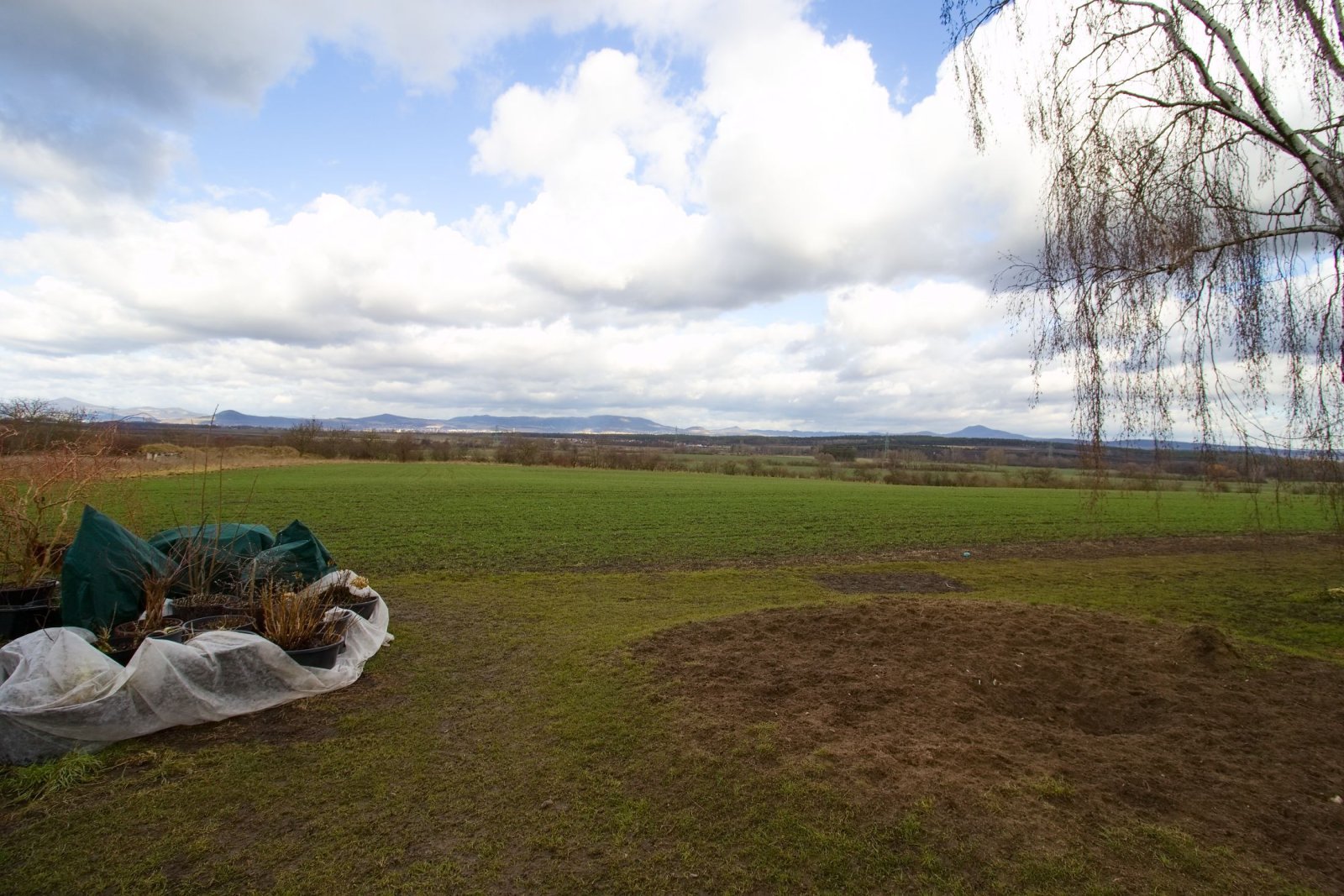 Okolí domu je obklopeno zelení s výhledem do přírody.