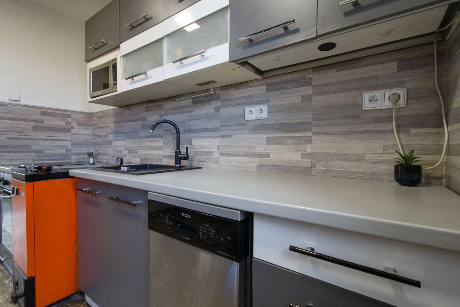 Kuchyňská linka je vybavena elektrickým sporákem a myčkou nádobí.