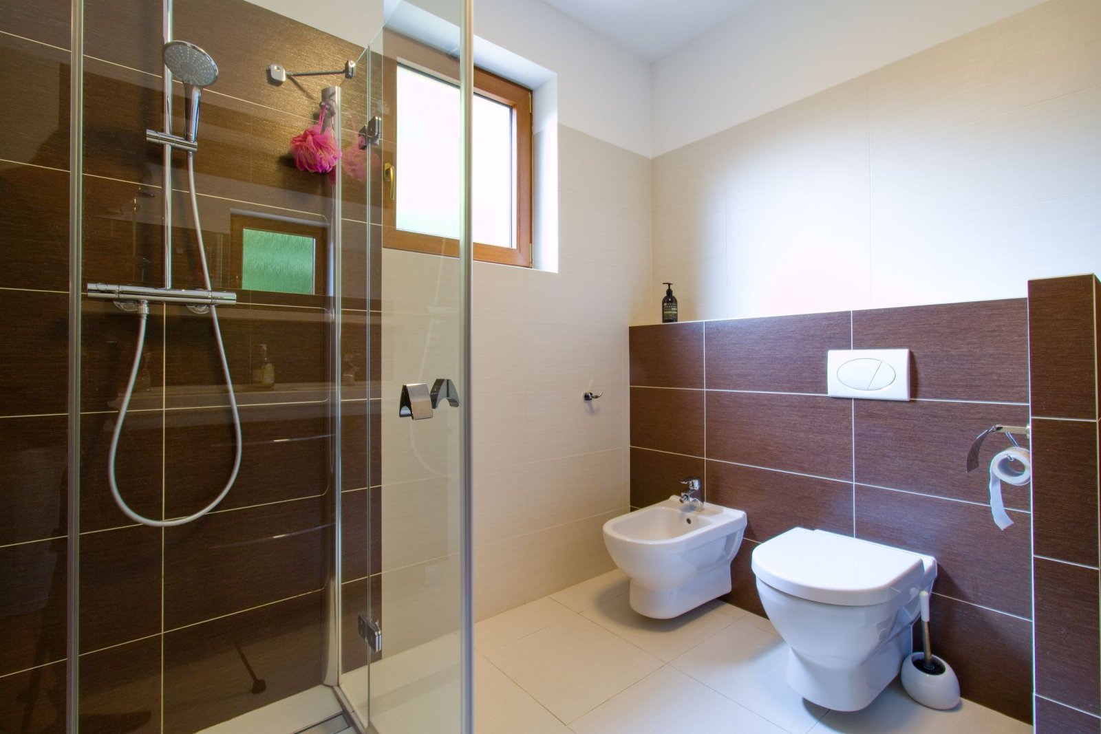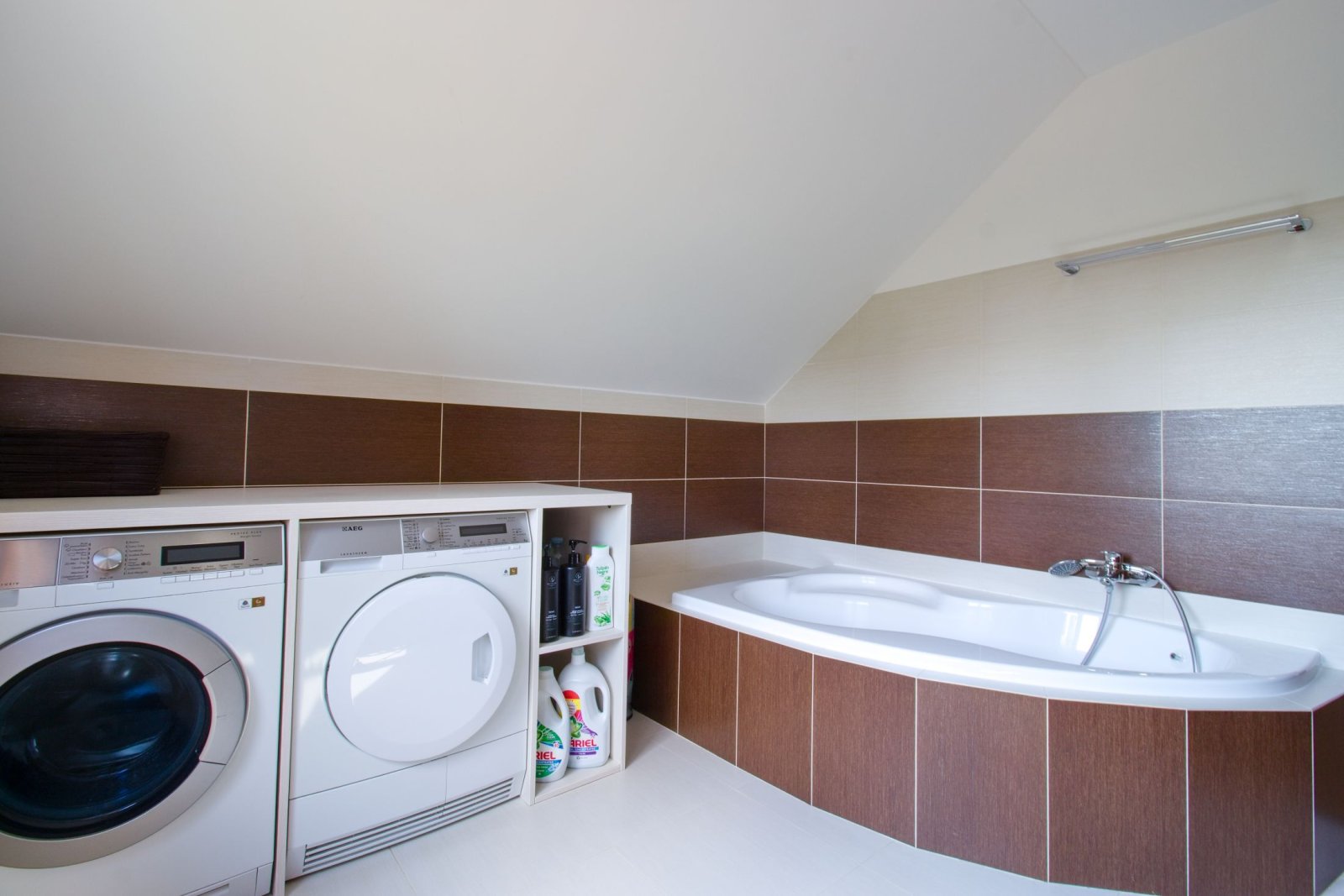 sprchovým koutem, šatna, technická místnost, vstup do garáže a schodiště