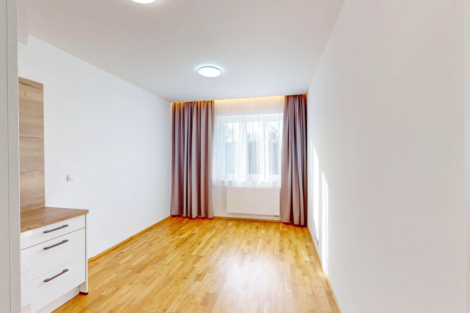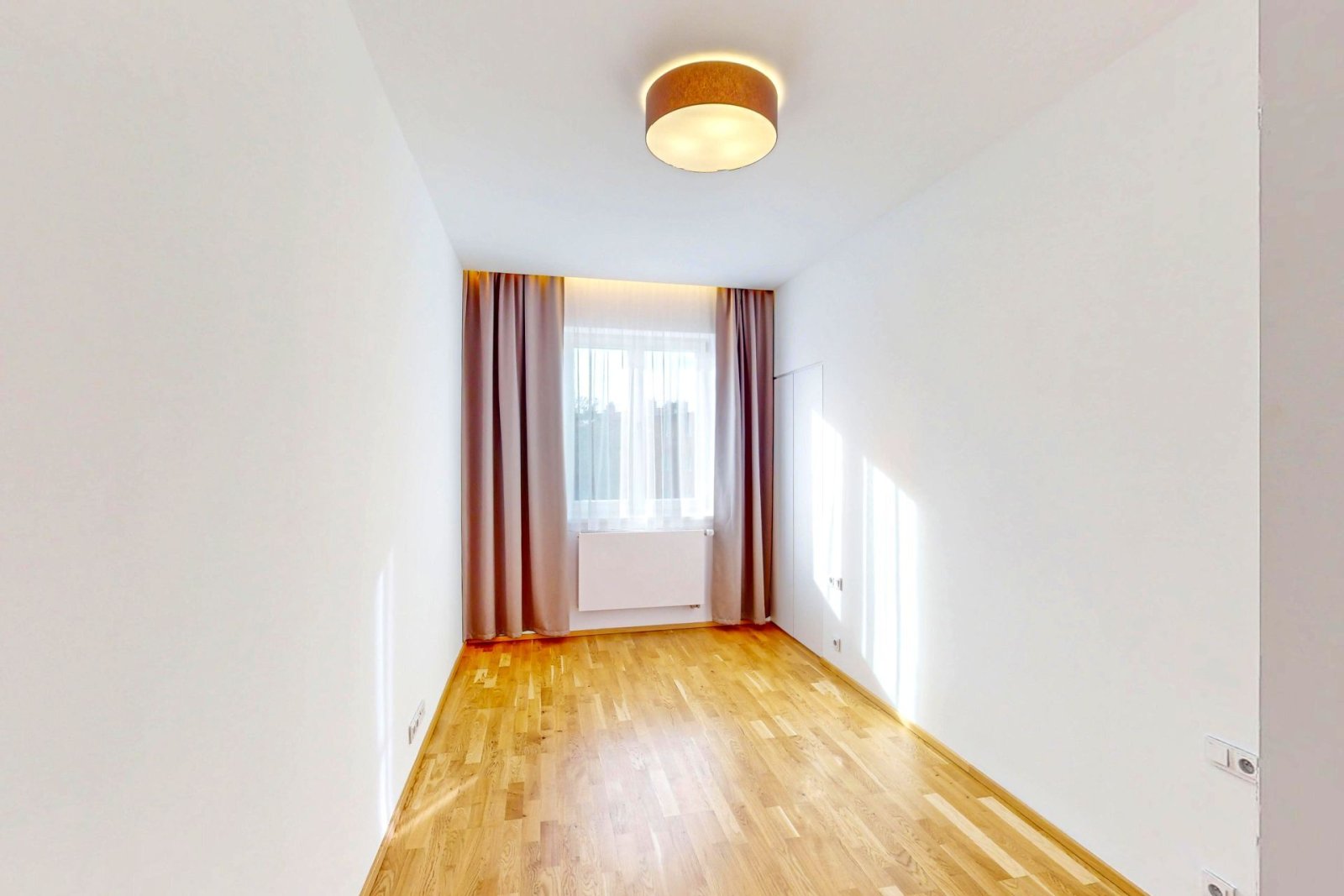 Pokoj: plovoucí podlaha, vestavná šatní skříň se zrcadlem a dotykovým