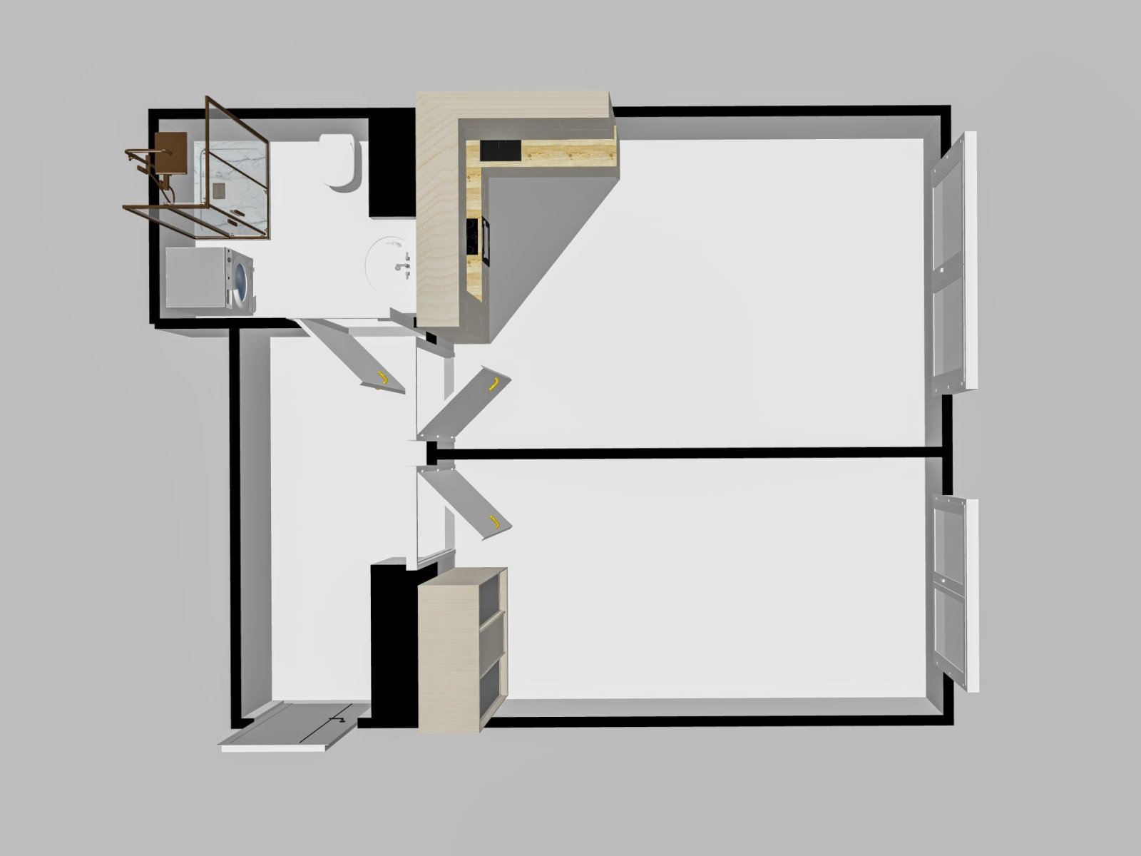 Byt je částečně vybavený novým moderním nábytkem a spotřebiči: