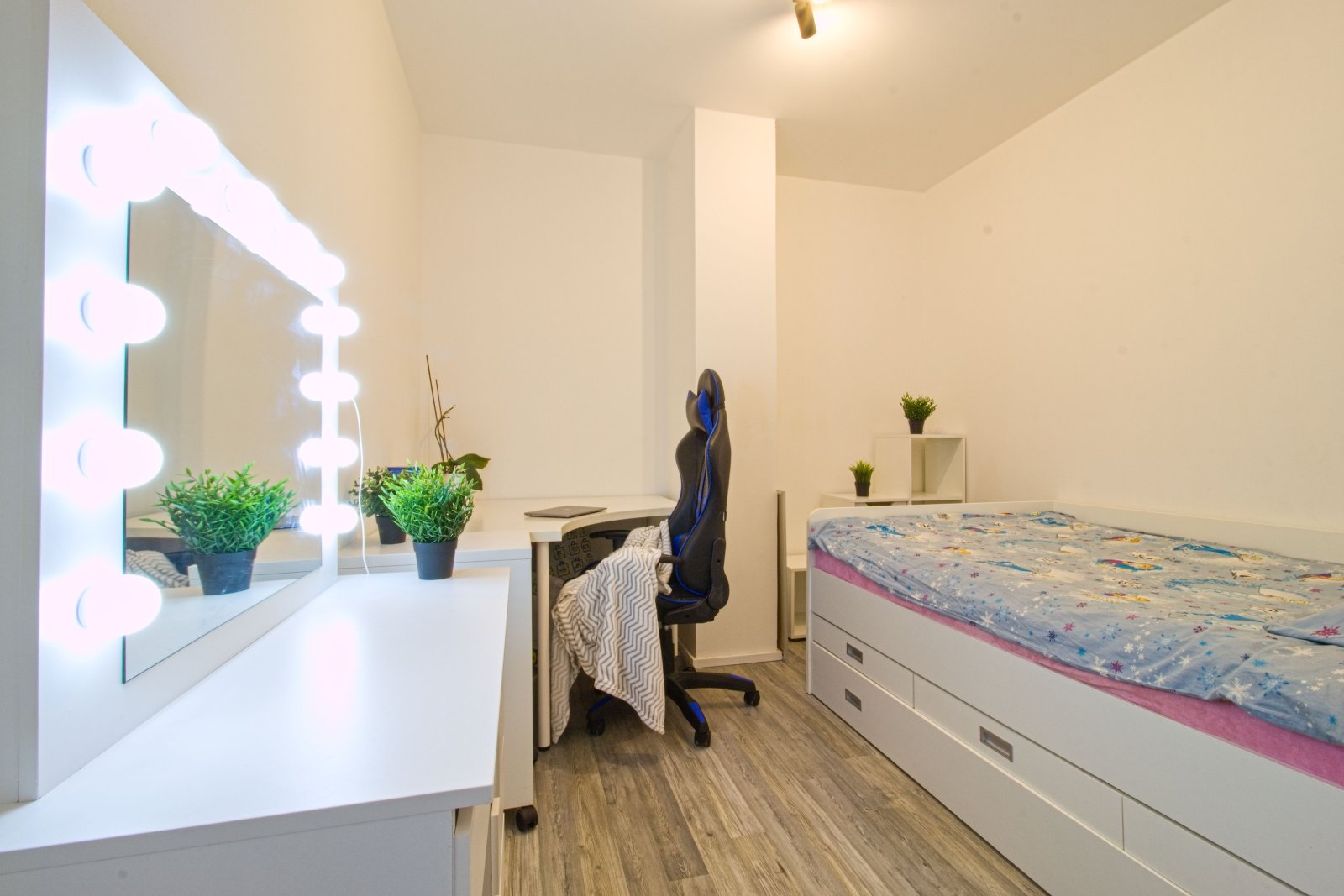 Byt je vhodný pro dvě až tři osoby. Měsíční nájemné činí 14 500,–